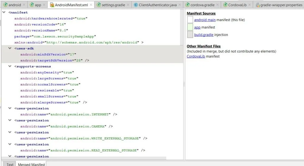 buildfile for your project. Converting all your library jars into dependencies. Other task it will be doing is to merge all your AndroidManifest.xml files. If there are any errors, it will show those errors during sync. Easiest way to fixAndroidManifest.xmlerrors are to go to this screen: